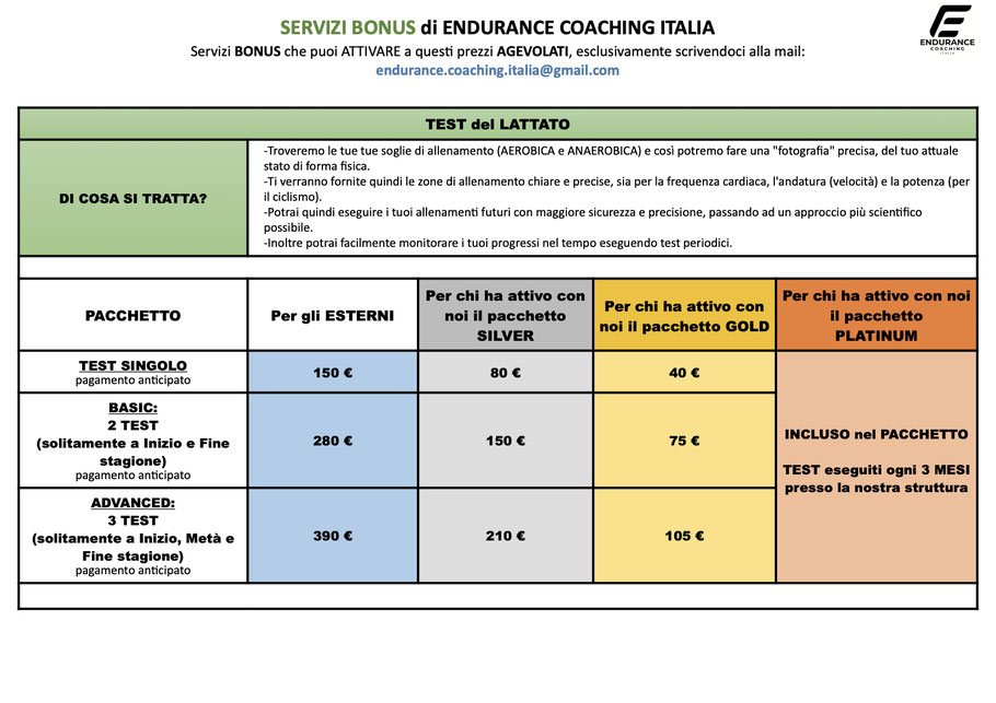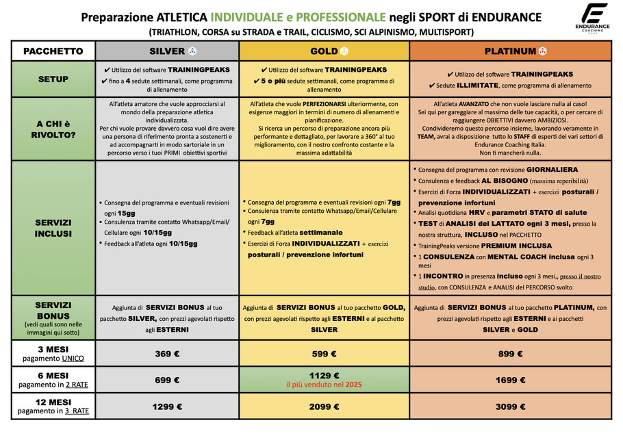 Creiamo un piano di allenamento utilizzando gli strumenti e i metodi che riterremo più idonei al periodo e alle tue caratteristiche di atleta..