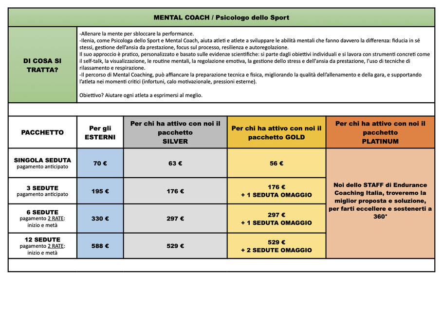 -Servizi EXTRA preparazione fisica (Psicologo dello Sport / Mental coach, Nutrizionista.....)